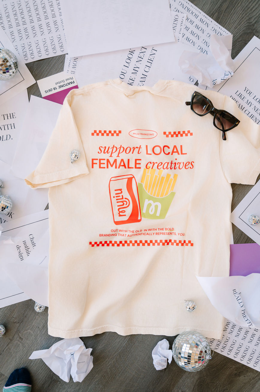 Whether you’re pitching big ideas at a client call, knocking out work at your favorite coffee shop, or strolling the aisles of Target on a Saturday—this tee makes sure your message comes through loud and clear: support local female creatives.